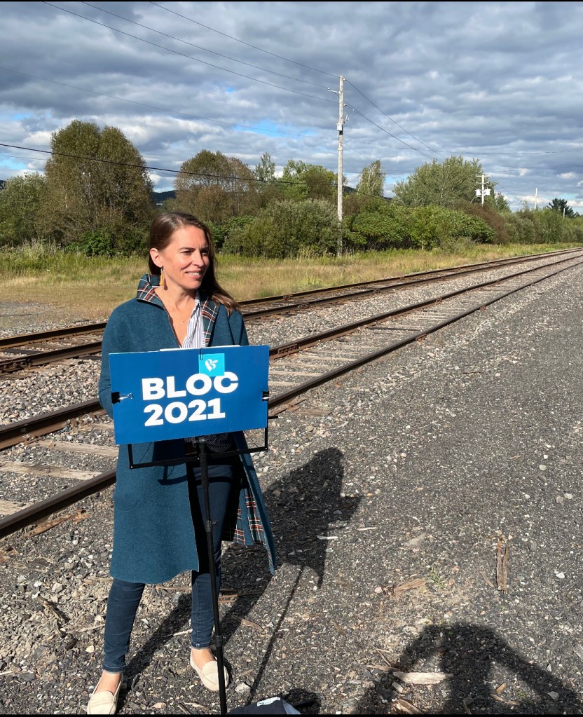 En conférence de presse à Bromont, près du chemin de fer de l’intersection des rues de Gaspé et de Montréal, Mme Marilou Alarie, candidate du Bloc Québécois dans Brome-Missisquoi et Andréanne Larouche, candidate dans Shefford, réitère leur appui indéfectible au projet de train Montréal- Sherbrooke.